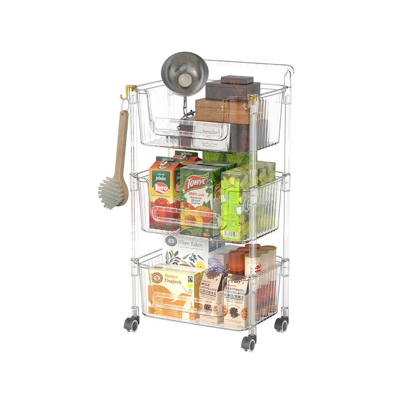 I tillegg til dette, er den justerbare gjennomsiktige arrangøren av trelagshjulet vogntog egnet for forskjellige miljøer, inkludert hjem, kontorer, kommersielle steder, etc., for å lagre forskjellige typer varer som mat, dokumenter, verktøy osv. Det kan ikke bare hjelpe brukere med å sortere og organisere gjenstander og holde rommet ryddig og ordnet, men også forbedre arbeidseffektiviteten og kvaliteten på livet. For eksempel, i hjem, kan denne lagringsvognen brukes til å lagre kjøkkenutstyr og krydder, familiedokumenter og barneleker; På kontorer kan det brukes til å lagre dokumenter, skrivesaker og kontorrekvisita for å hjelpe ansatte med å holde arbeidsområdene ryddige. og effektiv. Denne allsidige bruken gjør lagringsvogner til en uunnværlig del av det moderne liv og arbeid.